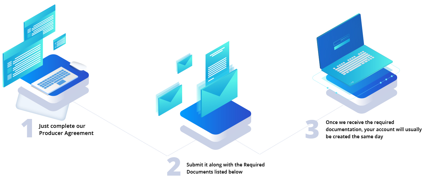You may also download, complete, sign and email the Producer Agreement, W-9 and Agency Sweep & Direct Deposit authorization to marketing@mexipass.com